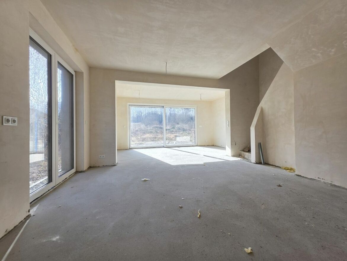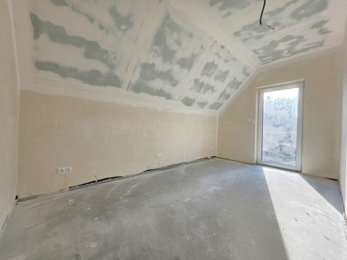Dom w stanie deweloperskim wybudowany z betonu komórkowego, ocieplony styropianem o grubości 20 cm.